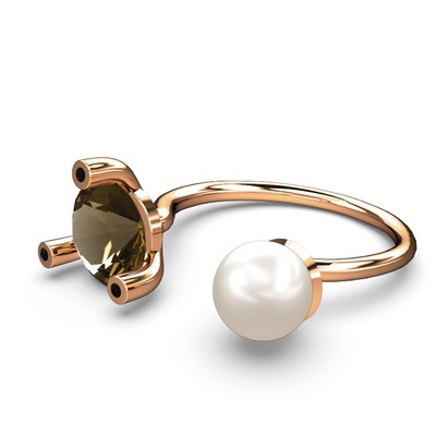 Inci, dumanlı kuvars ve siyah zirkon 925 ayar rose altın kaplama gümüş yüzük