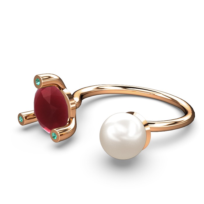 Inci, kök yakut ve yeşil kuvars 18 ayar rose altın yüzük