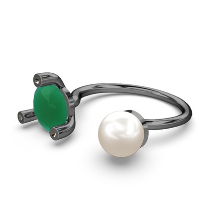 Inci, kök zümrüt ve dumanlı kuvars 925 ayar siyah rodyum kaplama gümüş yüzük