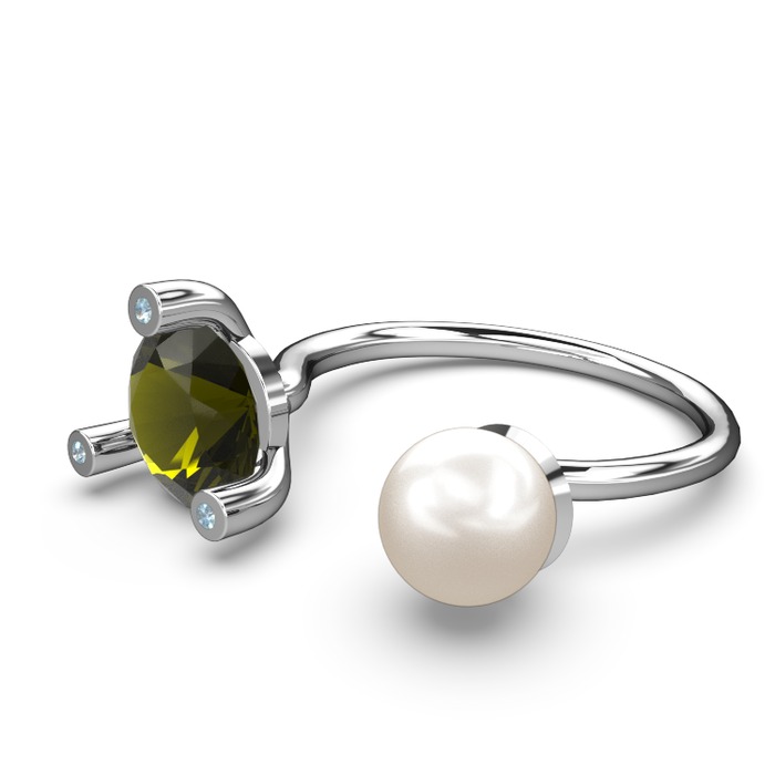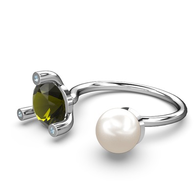 Inci, peridot ve akuamarin 14 ayar beyaz altın yüzük