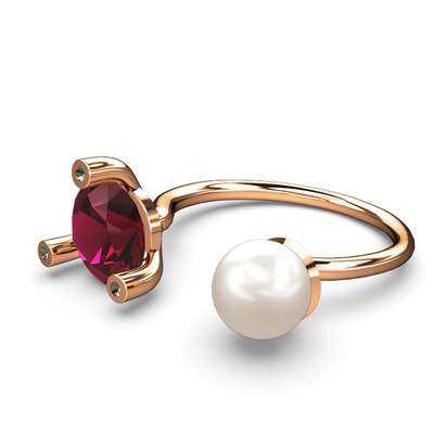 Inci, rodolit garnet ve dumanlı kuvars 18 ayar rose altın yüzük