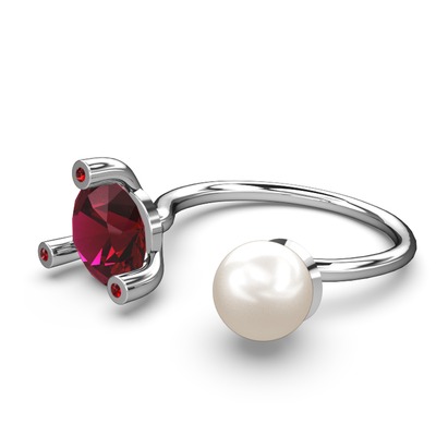 Inci, rodolit garnet ve garnet 8 ayar beyaz altın yüzük
