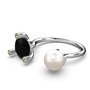 Inci, siyah zirkon ve peridot 8 ayar beyaz altın yüzük