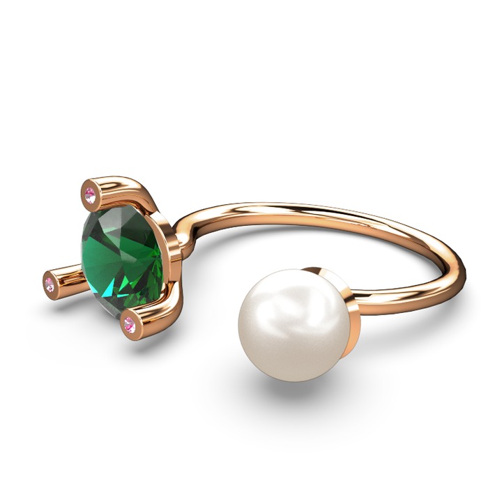 Inci, yeşil kuvars ve pembe kuvars 14 ayar rose altın yüzük