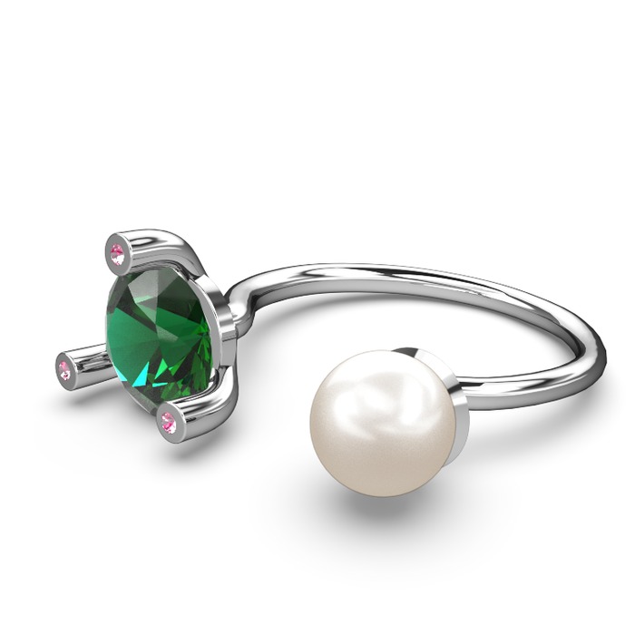 Inci, yeşil kuvars ve pembe kuvars 18 ayar beyaz altın yüzük