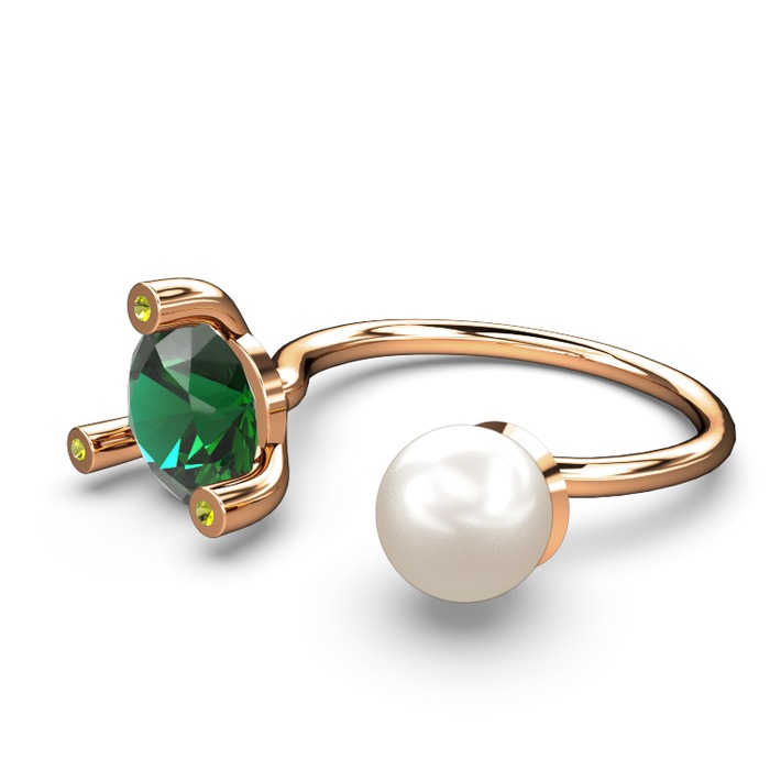 Inci, yeşil kuvars ve peridot 8 ayar rose altın yüzük