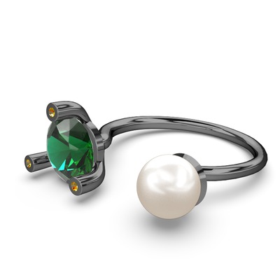 Inci, yeşil kuvars ve sitrin 925 ayar siyah rodyum kaplama gümüş yüzük