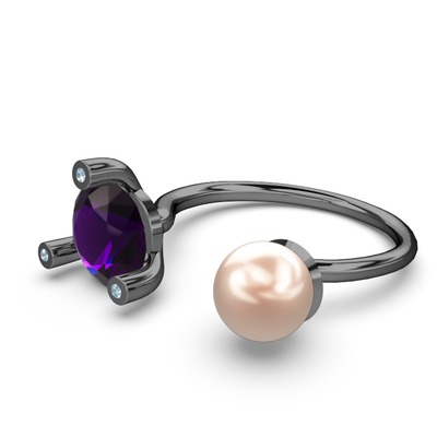 Pembe inci, ametist ve akuamarin 925 ayar siyah rodyum kaplama gümüş yüzük