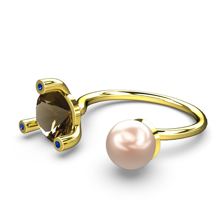 Pembe inci, dumanlı kuvars ve lab safir 14 ayar altın yüzük