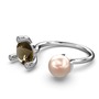 Pembe inci, dumanlı kuvars ve pırlanta 14 ayar beyaz altın yüzük (0.024 karat)