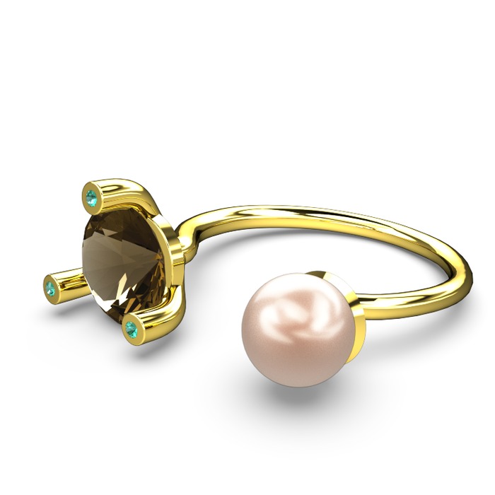 Pembe inci, dumanlı kuvars ve yeşil kuvars 8 ayar altın yüzük