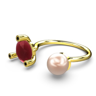 Pembe inci, kök yakut ve siyah zirkon 18 ayar altın yüzük