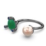 Pembe inci, kök zümrüt ve lab safir 925 ayar siyah rodyum kaplama gümüş yüzük