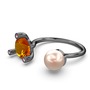 Pembe inci, sitrin ve pembe kuvars 925 ayar siyah rodyum kaplama gümüş yüzük