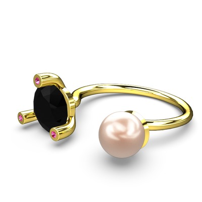 Pembe inci, siyah zirkon ve rodolit garnet 925 ayar altın kaplama gümüş yüzük