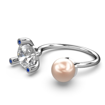 Pembe inci, swarovski ve lab safir 14 ayar beyaz altın yüzük