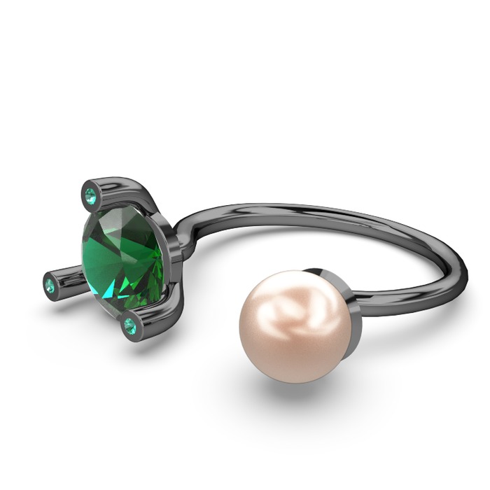 Pembe inci ve yeşil kuvars 925 ayar siyah rodyum kaplama gümüş yüzük