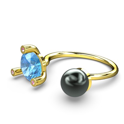 Siyah inci, akuamarin ve pembe kuvars 18 ayar altın yüzük