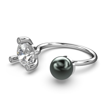 Siyah inci, beyaz zirkon ve pırlanta 8 ayar beyaz altın yüzük (0.024 karat)