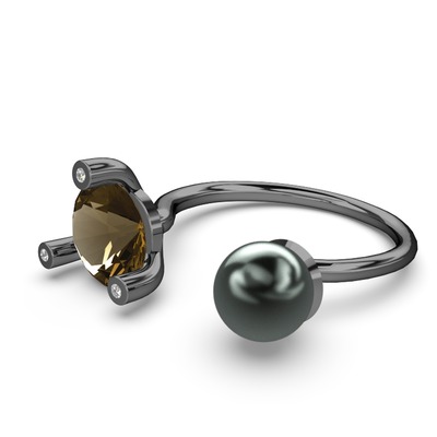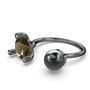 Siyah inci, dumanlı kuvars ve beyaz zirkon 925 ayar siyah rodyum kaplama gümüş yüzük