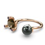 Siyah inci, dumanlı kuvars ve lab safir 925 ayar rose altın kaplama gümüş yüzük