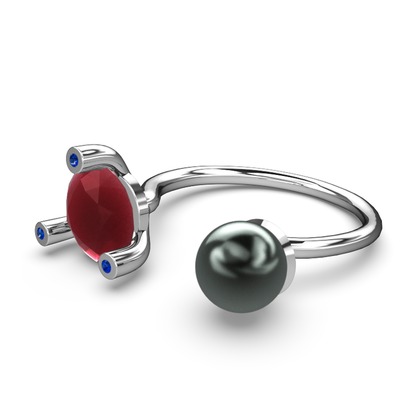 Siyah inci, kök yakut ve lab safir 18 ayar beyaz altın yüzük