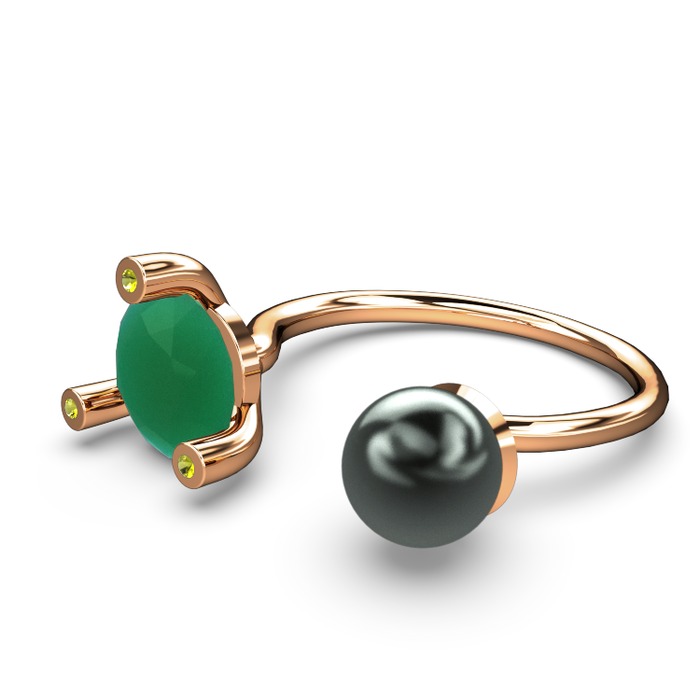 Siyah inci, kök zümrüt ve peridot 8 ayar rose altın yüzük