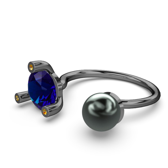 Siyah inci, lab safir ve sitrin 925 ayar siyah rodyum kaplama gümüş yüzük