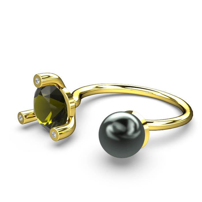 Siyah inci, peridot ve beyaz zirkon 14 ayar altın yüzük