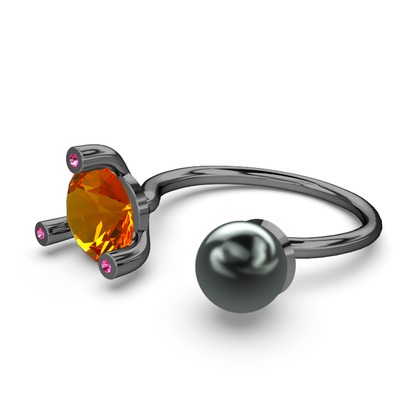 Siyah inci, sitrin ve rodolit garnet 925 ayar siyah rodyum kaplama gümüş yüzük