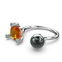 Siyah inci, sitrin ve yeşil kuvars 8 ayar beyaz altın yüzük