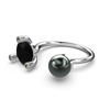 Siyah inci, siyah zirkon ve dumanlı kuvars 8 ayar beyaz altın yüzük