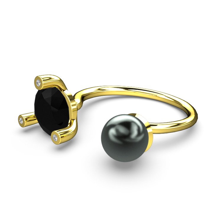 Siyah inci, siyah zirkon ve swarovski 8 ayar altın yüzük