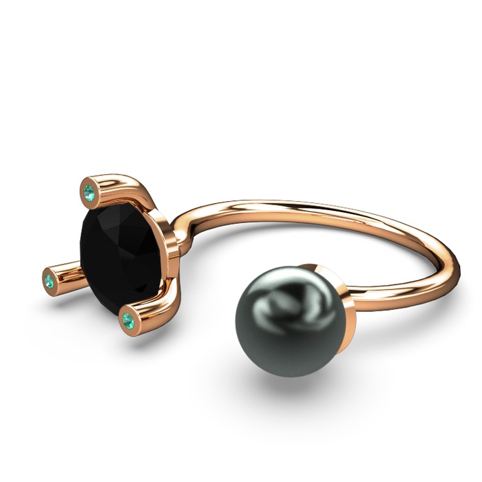 Siyah inci, siyah zirkon ve yeşil kuvars 18 ayar rose altın yüzük