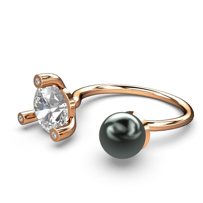 Siyah inci ve swarovski 14 ayar rose altın yüzük