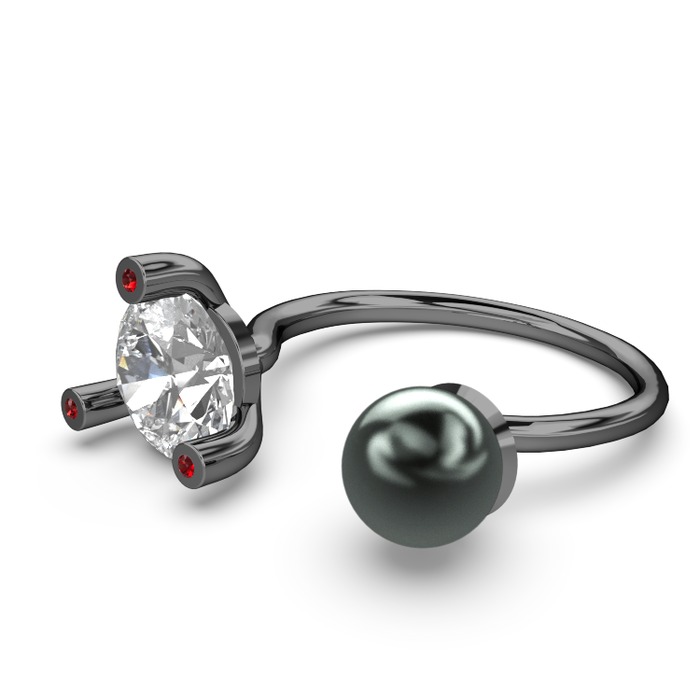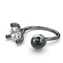 Siyah inci, swarovski ve garnet 925 ayar siyah rodyum kaplama gümüş yüzük