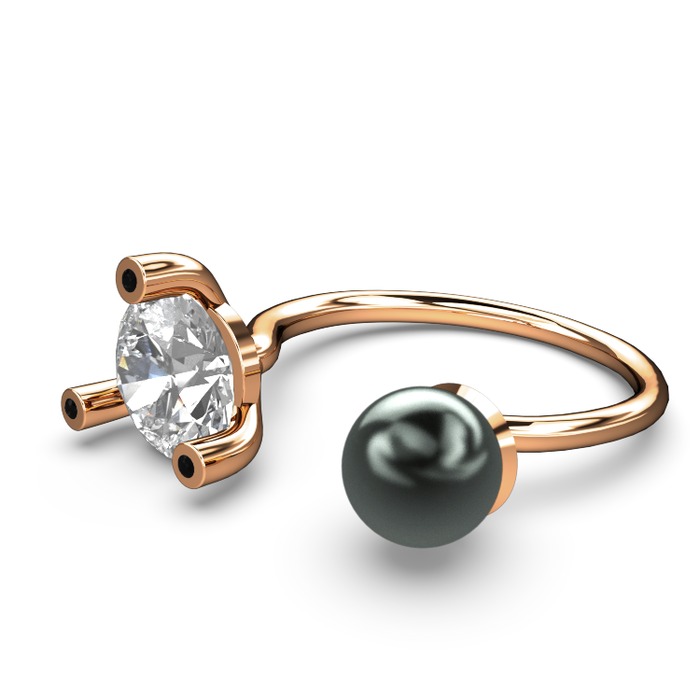 Siyah inci, swarovski ve siyah zirkon 18 ayar rose altın yüzük