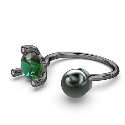 Siyah inci, yeşil kuvars ve pırlanta 925 ayar siyah rodyum kaplama gümüş yüzük (0.024 karat)