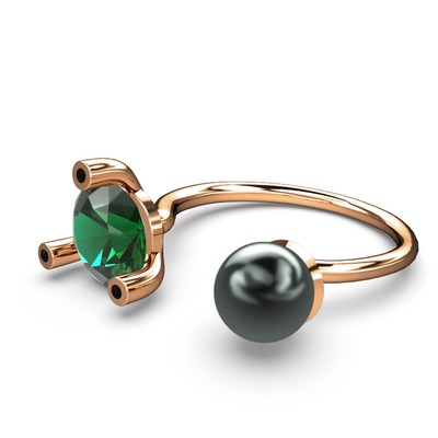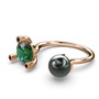 Siyah inci, yeşil kuvars ve siyah zirkon 925 ayar rose altın kaplama gümüş yüzük