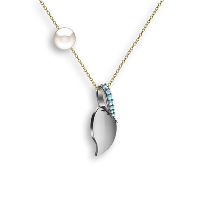 Akuamarin ve inci 18 ayar beyaz altın kolye (40 cm altın rolo zincir)
