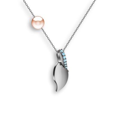 Akuamarin ve pembe inci 8 ayar beyaz altın kolye (40 cm beyaz altın rolo zincir)
