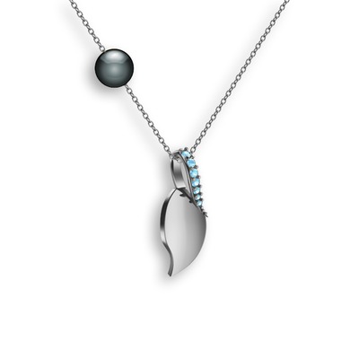 Akuamarin ve siyah inci 14 ayar beyaz altın kolye (40 cm beyaz altın rolo zincir)