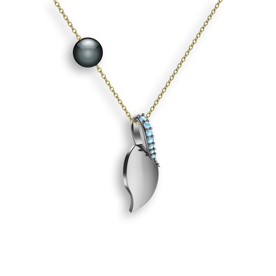 Akuamarin ve siyah inci 925 ayar gümüş kolye (40 cm altın rolo zincir)