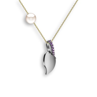 Ametist ve inci 18 ayar beyaz altın kolye (40 cm altın rolo zincir)