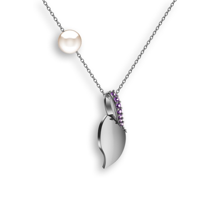 Ametist ve inci 18 ayar beyaz altın kolye (40 cm beyaz altın rolo zincir)