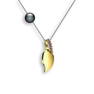 Ametist ve siyah inci 925 ayar altın kaplama gümüş kolye (40 cm beyaz altın rolo zincir)