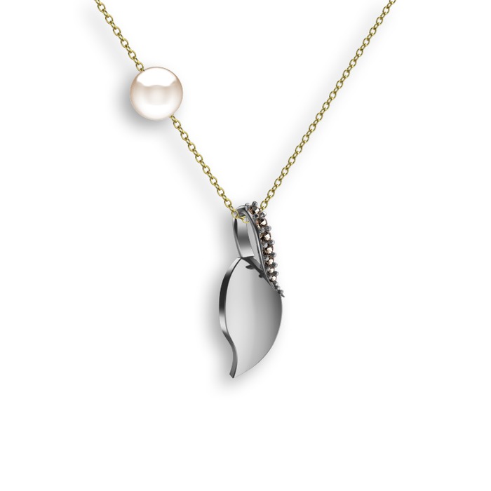 Dumanlı kuvars ve inci 18 ayar beyaz altın kolye (40 cm altın rolo zincir)