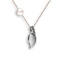 Dumanlı kuvars ve inci 8 ayar beyaz altın kolye (40 cm rose altın rolo zincir)