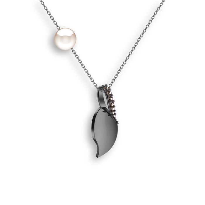 Dumanlı kuvars ve inci 925 ayar siyah rodyum kaplama gümüş kolye (40 cm beyaz altın rolo zincir)