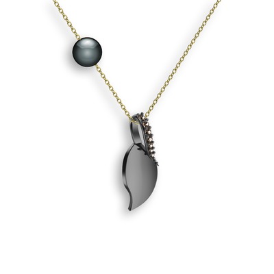 Dumanlı kuvars ve siyah inci 925 ayar siyah rodyum kaplama gümüş kolye (40 cm altın rolo zincir)